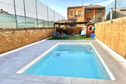 Piscina de 3 x 6 m y 1,40 m de profundidad con hamacas y valla de protección infantil.